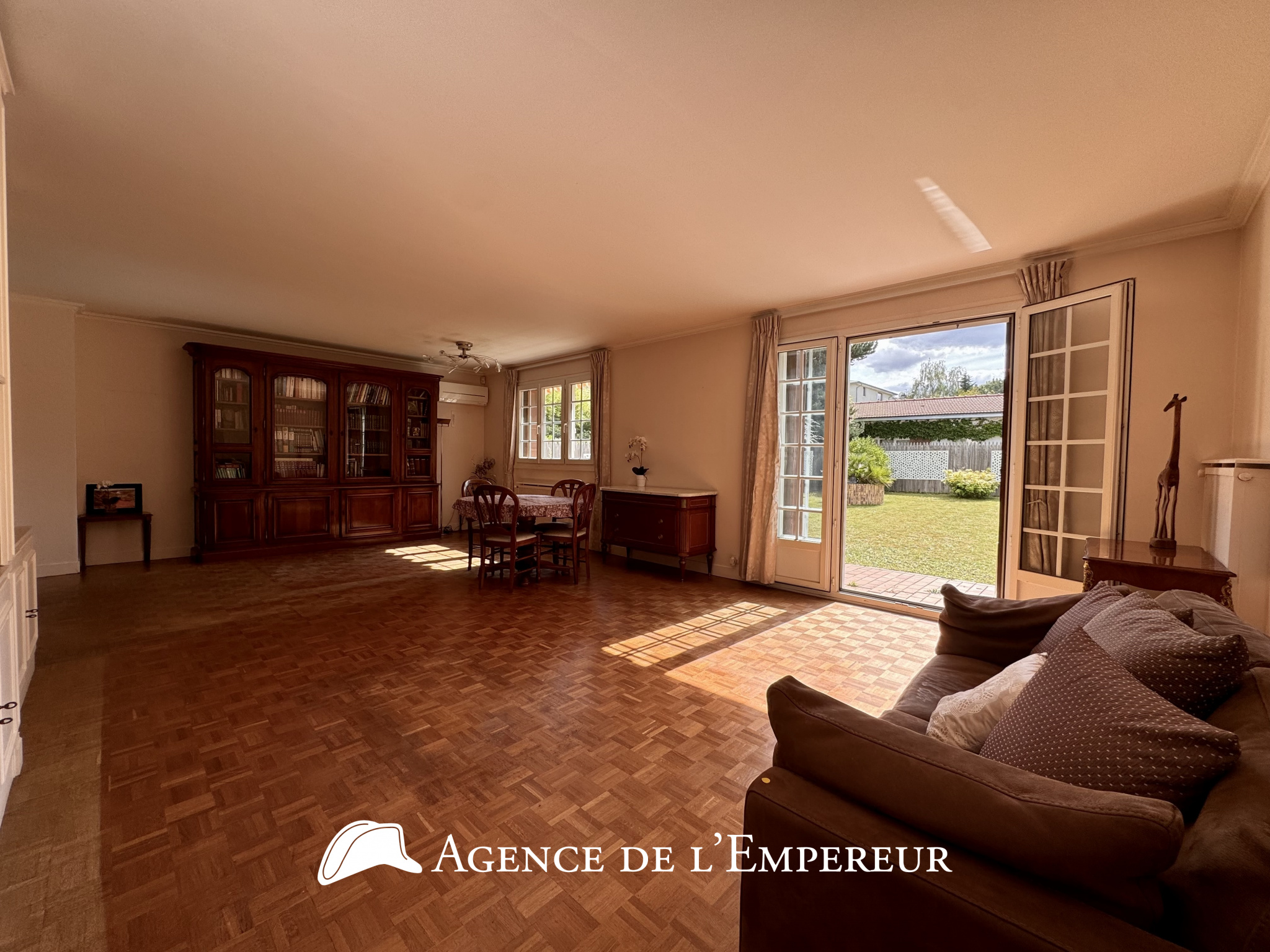 L’Agence de l’Empereur vous présente cette maison traditionnelle de 137 m2 sur 2 niveaux, 5 chambres dont une en rez-de-chaussée, plus un sous-sol total, construite sur une jolie parcelle de 344 m2 orientée Sud.