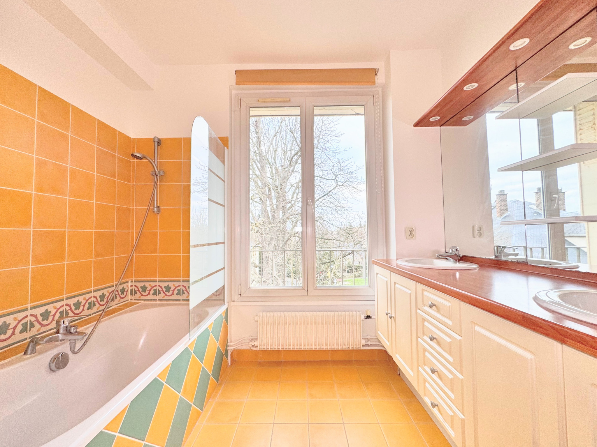 L’appartement se compose ainsi : une entrée avec un beau parquet, présent dans toutes les pièces sèches de l’appartement, un séjour orienté Ouest, une cuisine récente ouverte, créant un espace de vie d’environ 37 m2. La partie nuit comprend trois chambres de 11 m2, 11,5 m2 et 12,5 m2, avec une jolie vue sur les jardins de la résidence. Un dégagement avec placard et dressing, une grande salle de bains avec double vasque. Des toilettes séparées et une buanderie/cellier attenante à la cuisine. Double vitrage avec volets persiennes en accordéon. Chauffage au gaz collectif et eau froide collectifs, inclus dans les charges. Chauffe-eau individuel électrique. Charges trimestrielles de copropriété : environ 822 € et taxe foncière : environ 1260 € par an. Gardiens et local vélo commun. Visite en vidéo 4K : https://www.youtube.com/embed/_G3HFWmXBtM?si=SJ3saSLFXCiB-Usa