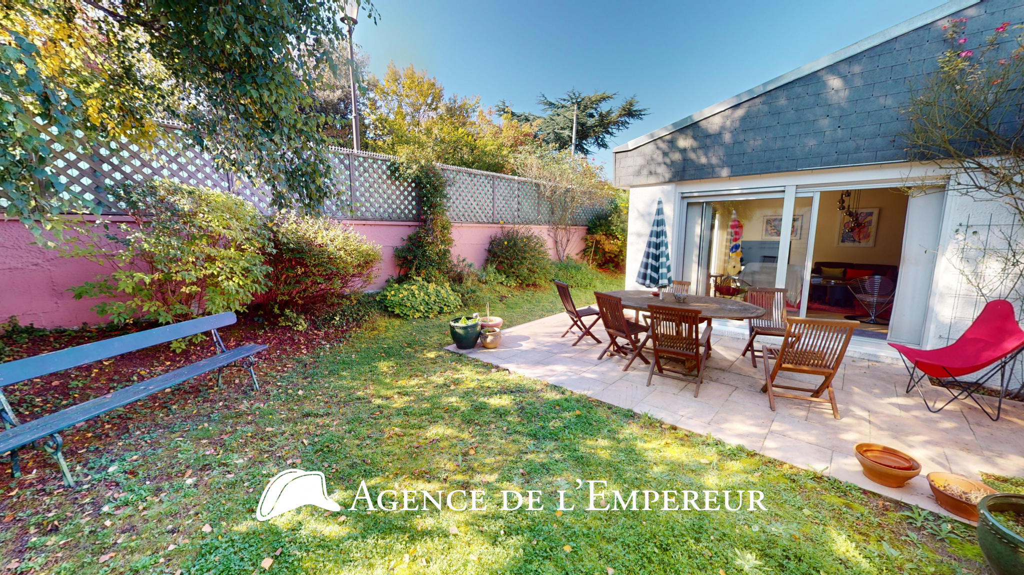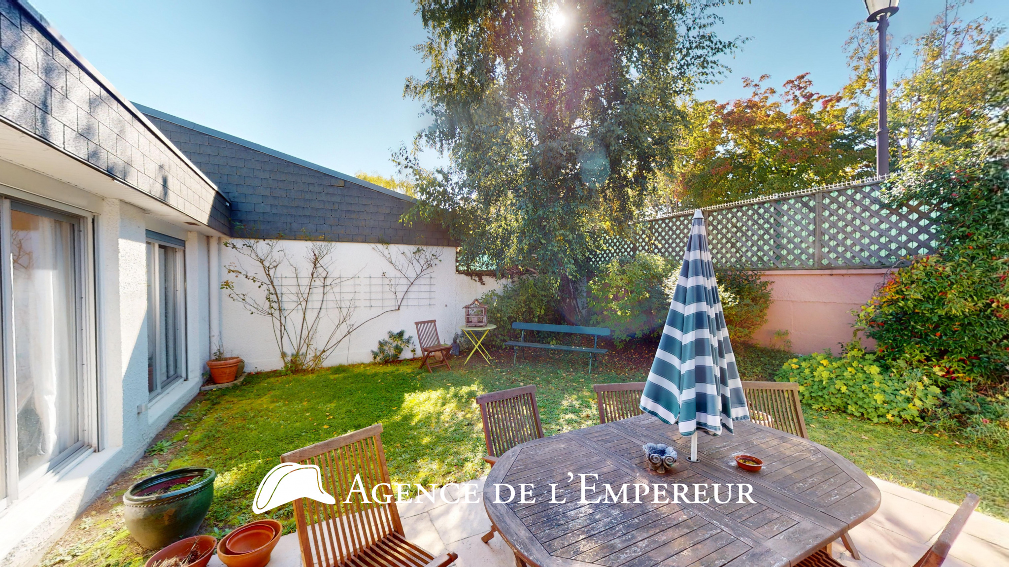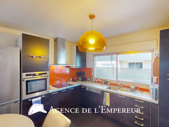 L’Agence de l’Empereur vous présente cette maison entièrement de plain-pied, 4 chambres, 121 m2 Carrez, entourée de son beau jardin dans une rue privée et sécurisée. Le chaleureux espace de vie séjour, de plus de 42 m2, est en parquet massif comme toutes les autres pièces sèches, et s’ouvre largement sur l’extérieur grâce à des baies vitrées orientées Sud et Est. La cuisine d’environ 10 m2 s’ouvre sur le séjour, créant un espace de vie total de 52 m2. La partie nuit comprend 4 chambres, dont 3 avec accès au jardin, se partageant une salle d’eau avec commodités. Une suite parents de 18 m2, avec salle de bains et commodités. Le jardin est charmant, plat, calme et sans vis-à-vis. Indépendamment du garage de 33,70 m2, vous avez la possibilité de stationner 2 voitures à l’extérieur. Les établissements scolaires publics et privés de qualité (George Sand, Jules Verne, Richelieu) sont à proximité immédiate, tout comme les établissements privés Passy, Montessori et Danielou. Les commerces de bouche sont accessibles à 6 min à pied, ainsi que la forêt de St Cucufa, le parc de Bois-Préau et le centre-ville de Rueil-Malmaison (à 14 minutes à pied). N’hésitez pas à nous contacter.